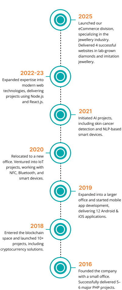 Two college friends with a shared passion for technology and innovation set out to make a mark in the IT industry. They began their journey with a single project, working from home and putting their skills and creativity to the test. The project turned out to be a great success, proving their potential and fueling their ambition. Encouraged by this achievement, they decided to transform their vision into reality by founding Caliente iTech. What started as a small idea quickly grew into a company built on dedication, innovation, and trust. Since then, Caliente iTech has continued to expand, taking on diverse projects across industries and technologies. Today, the company stands as a testament to their belief in hard work, teamwork, and the power of innovation.
